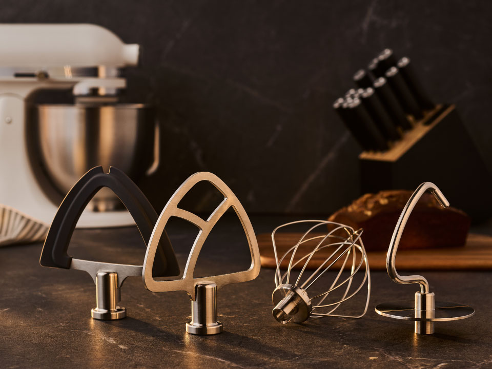Votre nouveau robot pâtissier multifonction Artisan Plus de KitchenAid (5KSM50PKV) est livré avec un ensemble d’accessoires en acier inoxydable haut de gamme qui vous permet de maîtriser bien plus que les bases.
